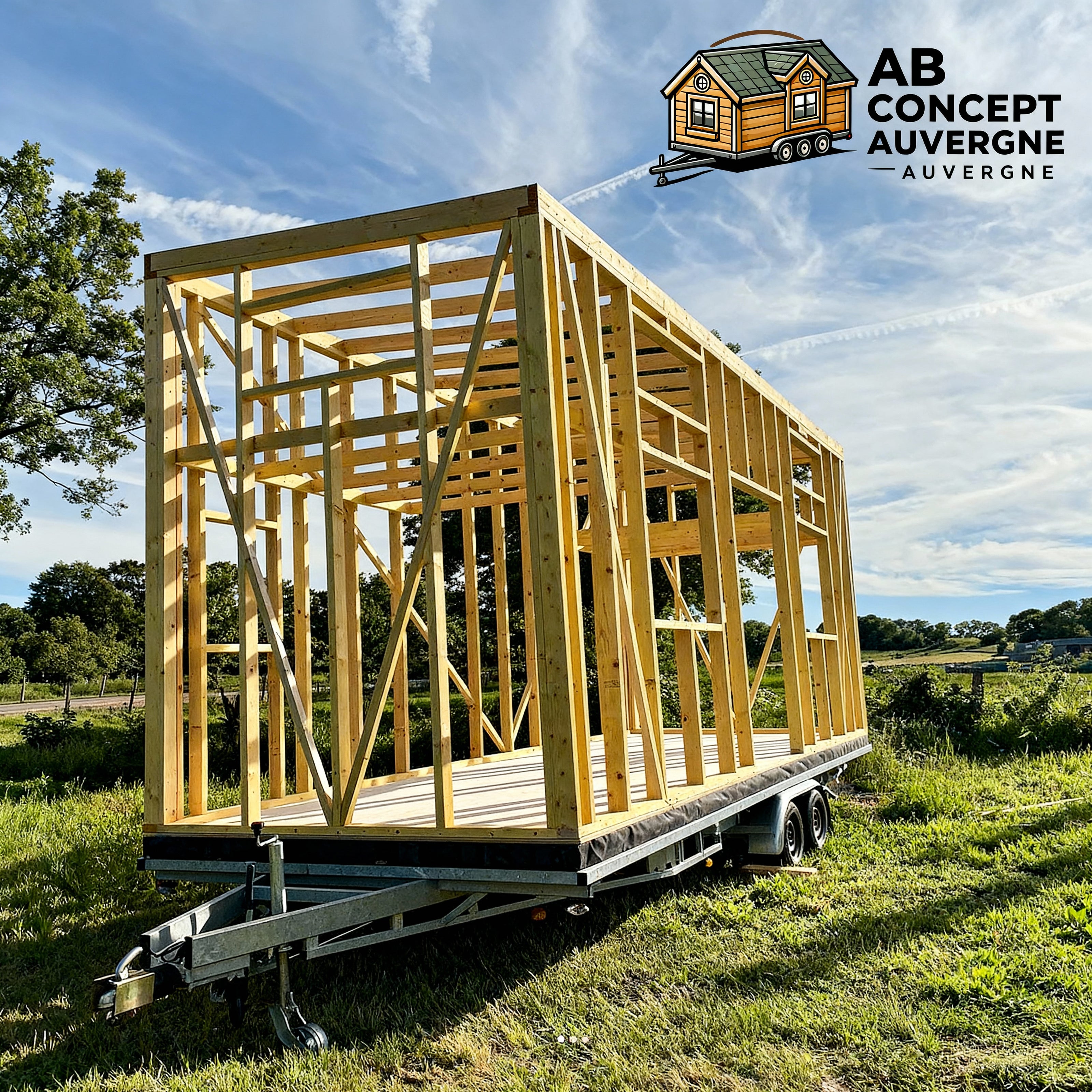 Studio, tiny ou module perso : fabrication de l’ossature, du plancher et de la remorque, prête à être aménagée par vos soins.