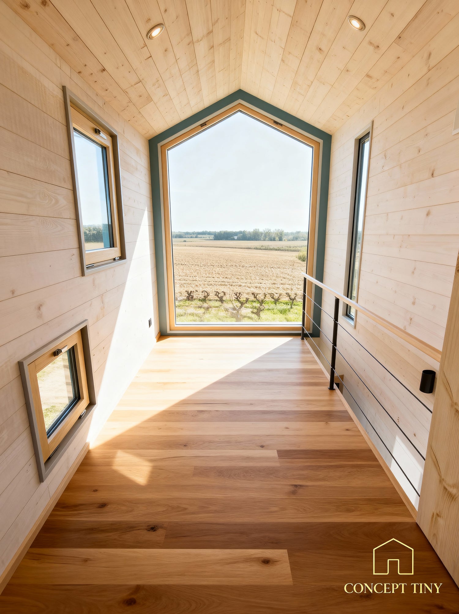 Chaque Tiny House Concept Tiny est conçue pour offrir une qualité de vie exceptionnelle. Grâce à un travail artisanal précis et à des matériaux haut de gamme, nos intérieurs allient fonctionnalité, luminosité et design scandinave. Chaque élément — des menuiseries aux finitions — est pensé pour créer un espace confortable, durable et parfaitement adapté à votre mode de vie.